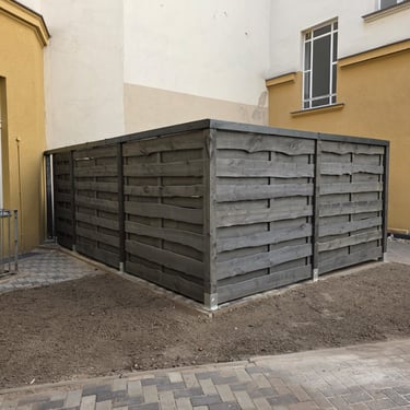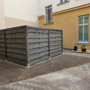 Der Mülltonnenbereich wurde komplett überarbeitet und wirkt nun sauber, aufgeräumt und funktional. Zaun, Zugang und Boden sorgen für Ordnung und Sicherheit.